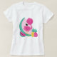 Un t-shirt avec une jolie illustration d'un flamant rose avec quelques pastèques et ananas. Couleurs rose et vert. L'été et tropical.
