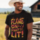 Un design graphique fougueux avec les mots Flame On Bro! Partys Lit en caractères gras et stylisés avec un design de flamme.