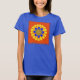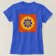 Fleur vibrante avec pétales en orange, orange rouge, bleu cobalt, bleu clair, vert et jaune.