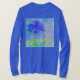 Ce t-shirt affiche un collage numérique composé de plusieurs couches de scans de photographies, de peintures et de textures. Un amas de fleurs violettes bleues est posé sur un arrière - plan abstrait dans les tons lavande, vert, pourpre et bleu.