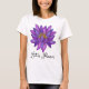 Le t-shirt présente une fleur de lotus violet audacieuse avec des étamines jaunes au centre. Sous la fleur, il y a un texte qui se lit actuellement "Fleur de Lotus" dans une police cursive décorative. Ce texte est personnalisable, ce qui signifie qu'il peut être modifié à n'importe quel libellé, expression ou nom de votre choix pour personnaliser le design.