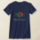 T-shirt avec un joli bouquet fleuri aux couleurs rouge, or et vert. Texte : Joyeux Noël.