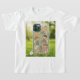 T-shirt fluffy white kittens, and hopping bunnies interact