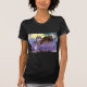 Sous un ciel doré, entouré de fleurs violettes, un alien, 6 pattes, bijou alien kitty se détend au bord d'un bassin de lys. Cadeau humoristique pour tous les âges mais particulièrement approprié pour les enfants.