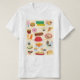 A vector art of different varieties of food such as cotton candy, hamburger, fried prawns, gyoza, pizza, potato fries, hotdog, donut, corndogs, jelly, ramen, lasagna, sundae, ice cream, muffin, nachos, mochi, sushi, sandwich, rice ball, and taco.