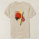 Un triangle noir divisé en segments, une bande trapézoïdale noire divisée en deux, un cercle rouge, un rectangle jaune, un carré rouge pâle, un cercle pourpre, et un carré orange sont des éléments de cet art abstrait de formes imbriquées par Richard H. Fay.