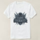 Bold clean typography T-shirt design with military-inspired symbols, muted dark blue and gray palette, dynamic composition emphasizing strength and competitiveness. Photorealistic, transparent background, print-ready.