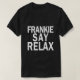 Un design original et rétro avec l'expression "Frankie Say Relax" sur un chandail cosy. Parfait pour ajouter une touche ludique et amusante à votre garde-robe.