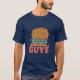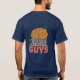Ce t-shirt design présente le texte "Fries Before Guys" dans une variété de polices colorées contre un arrière - plan bleu clair solide. Le texte est arrangé de façon ludique et accrocheuse, avec le mot "Fries" dans une police plus grande que le mot "Guys". L'ensemble est amusant et léger, et le design plaira à tous ceux qui aiment les frites.