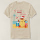 Fun Santa Claus Noël Snowman Custom T-Shirt une façon amusante de penser à la chaude plage de sable avec Sandy Claus sur elle avec des cadeaux. Personnalisez-le avec votre année et vos informations.