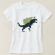 There is something undeniably fun about mixing the Jurassic era with December traditions. This illustration features a funny looking dinosaur who is taking his festive duties very seriously. Donning a classic red Santa hat, this little guy is trekking through the winter vibes carrying a massive Christmas tree on his back.