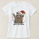 Un drôle de design hivernal de raton laveur mignon enchevêtré dans les lumières de Noël, qui dit : "Joyeux Noël"