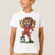 This vibrant cartoon lion in a red soccer kit celebrates with energy and charm, standing proudly on a soccer ball. Perfect for sports-themed apparel, youth merchandise, or team branding, it blends fierce athletic spirit with playful character design. Ideal for fans, players, and lion lovers alike.