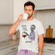 Start your mornings like a true zombie with this hilarious “Coffee, Because Murder Is Wrong” T-shirt. Featuring a grumpy undead in pajamas clutching a coffee pot, this design is perfect for coffee lovers, caffeine addicts, and anyone who’s barely alive before their first cup. Personalize it with your name. Great gift idea for men and women who love dark humor, sarcasm, and caffeine-fueled mornings.