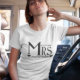 Future Mrs t-shirt blanc pour les femmes nouvellement fiancées. Personnalisez-le en ajoutant le nom de famille du mari / conjoint.