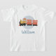 Cette mignonne chemise pour enfants présente une illustration de voyage en train bleu et orange, et de l'espace pour ajouter votre nom de garçon. Parfait pour les petits amoureux de train ! Un grand cadeau moderne pour votre prochain cadeau d'anniversaire pour enfants, idéal pour l'école ou l'école maternelle.