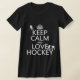 C'est le classique gardent la conception calme, reformulée "gardez le calme et l'hockey sur". Il y a des silhouettes des joueurs de hockey près et sur des mots. c'est un amusement, conception, populaires lumineux avec des joueurs de hockey, des entraîneurs et des fans. Fait de grands cadeaux.