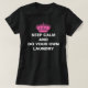 T-shirt drôle pour femme rose et noir. Ce t-shirt rose et noir "keep calm and do your own laundry" (garde ton calme et fais ta propre lessive) comporte une couronne rose et vous pouvez changer le style de t-shirt, la couleur, le style de texte et la couleur en cliquant simplement sur le bouton "Personnalisez-le !". Veuillez noter que tous les t-shirts, autocollants, cartes et invitations, etc., que vous trouverez sur Zazzle sont des créations graphiques imprimées sans véritables bijoux, rubans, reliefs, gaufrages ou pièces ajoutées.