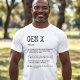 Montrez votre fierté Génération X avec notre drôle de T-shirt Génération X Définition. Cette chemise honore l'essence d'une génération qui a transformé la négligence parentale en une forme de résilience. Ce T-shirt parle au coeur de ce que signifie faire partie de la Génération X, ceux qui ont navigué dans le monde analogique et transformé chaque défi en une opportunité de croissance et d'indépendance. Que vous soyez à une rencontre décontractée ou à une réunion nostalgique, cette chemise attirera des sourires et des hoches de Gen Xers qui partageront vos expériences.