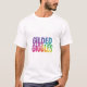 Ce t-shirt présente la phrase "Gilded Giggles" dans un dégradé multicolore ludique. Chaque lettre est une nuance vibrante différente, créant un look amusant et énergique.