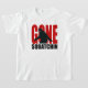 This cool, bold design features large text in bright red and black with everyone's favorite sasquatch forest creature, Bigfoot, strolling on through.