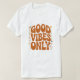 Spread positivity in style with this minimalist "Good Vibes Only" tee. Retro 70s-inspired arched font, subtle geometric patterns, and soft earthy tones create a laid-back, feel-good vibe that's perfect for everyday wear.