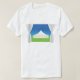 Vue par la fenêtre d'une grande tente blanche sur herbe verte. Ce design semble vraiment efficace sur ce T-shirt Mens