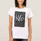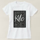 Ce design de T-shirt comporte le mot "Kilo" dans une typographie audacieuse et ludique cursive. Le lettrage blanc se démarque nettement de l'arrière - plan noir profond, créant un contraste saisissant qui met en valeur l'ambiance amusante et énergique du design. Le style cursif ajoute une touche d'élégance et d'élégance, ce qui rend cette chemise à la fois élégante et attrayante. Parfait pour ceux qui veulent porter un design simple mais impactable, plein de personnalité.