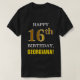 Ce simple design de chemise de couleur noire sur le thème de l'anniversaire présente un voeu d'anniversaire chaleureux comme "HEUREUX 16ème anniversaire, GEORGIANA !" sur le devant, en gras. Le numéro d'anniversaire a un look de couleur imitation or. Le nom sur le devant peut être personnalisé. Une chemise sur le thème de l'anniversaire comme celle-ci pourrait être portée à une fête d'anniversaire pour quelqu'un qui célèbre son seizième anniversaire. [~Z0000318]