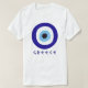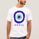Ce t-shirt d'été blanc pour homme grec maléfique est parfait si vous êtes grec ou si vous aimez la Grèce. Ce dessin comporte un dessin du symbole de protection oculaire grec avec le mot "Grèce" dans la police de style grec.