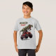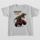 N'importe quel garçon qui aime les dinosaures et les camions monstres va adorer ce t-shirt. L'image est celle d'un T-Rex vert à bord d'un camion monstre rouge. Le texte vert et rouge correspondant dit "MONSTER Truck".