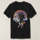 Ce design Halloween éffrayant présente Grim Reaper chevauchant une licorne sous un arc-en-ciel.