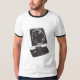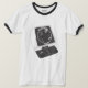 Guerres d'Astro de la tribune. Ce les rétros envahisseurs du jeu électronique tenu dans la main de l'espace des années 1970 est un classique de conception. Le T-shirt comporte dessin au trait noir et blanc par Philip Arnold, comme vu dans les jouets crèmes du livre TV.