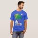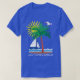 Un mignon mouette s'envole sur un palmier vert vif et un soleil jaune gai brille. Un voilier bleu, à voile intégral, fait des croisières sur les vagues de l'océan. Un poisson étoilé se trouve sur la plage de sable en attente de la marée suivante. Les mots "Gulf Shores, Alabama" sont sous l'oeuvre. Célébrez la magnifique côte du golfe de l'Alabama avec cette chemise souvenir de voyage colorée et amusante.
