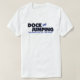 Cet habillement sautant de dock d'amusement est parfait pour n'importe qui dans le sport de chien de la plongée de dock. Une silhouette bleue de chien décolle au-dessus du mot "sautant," qui a une ligne de flottaison onduleuse fonctionner par lui. Au-dessous de cela lit, des "sports de chien juste obtenus beaucoup plus frais."