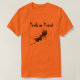 Ce tee - shirt d'Halloween est doté d'une fourmi plus grande que nature qui traverse le tissu orange. Le texte dit : Trick ou Treat. Il peut être customisé ou supprimé.