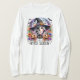 T-shirt à manches longues avec sorcière et squelette d'Halloween entouré de fleurs colorées et d'un citrouille, avec chauves-souris et un arrière - plan de lune et mots "Restez Éffrayants" dans une police mignonne. Portez ceci pour faire savoir à tout le monde que vous êtes dans l'halloween, l'humeur de la saison éffrayante! Un grand cadeau pour vous, amis, collègues, enseignants, voisins et membres de la famille. Ou utilisez comme tenue d'halloween.