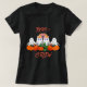 Un complément flatteur à votre garde-robe Halloween, ce T-shirt en coton a le cou v pour montrer votre col. L'illustration montre BOO CREW sur un patch citrouille. Au verso est une illustration correspondante. Le texte est personnalisable. Idéal pour la fête d'Halloween / Famille et les sorties. Si vous aimez mon oeuvre, visitez mon magasin "chic_design_boutique". Lien : https://www.zazzle.com/store/chic_design_boutique