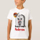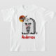Cette chemise pour enfants d'Halloween amusante a une pierre tombale déplaisante, une chauve-souris volant contre une pleine lune rouge de sang, un crâne avec des yeux de feu, et une araignée de veuve noire poilue. RIP est gravé dans la pierre tombale. Sous la scène déplaisante, il y a un modèle pour le nom de votre enfant. Sur le dos du t-shirt, il y a un autre crâne humain horrifiant.