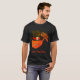 Tête de citrouille déplaisant portant un chapeau haut avec un T-shirt Halloween crâne. Remplacez votre texte dans le modèle ou assurez-vous de le supprimer sans texte. Disponible en tailles, styles et couleurs assortis pour les hommes, les femmes et les enfants. Visitez Smilin' Eyes Treasures pour voir plus de cartes et cadeaux d'Halloween.