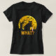 Diseño para Halloween con imagen de un gato negro con un cuchillo bajo la luna llena y la palabra "what? , Diseño divertido y sarcastico ideal para las fiestas de halloween. No dude y adquiera la suya ahora.