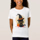 Girls tee shirt with a cute black cat wearing a witch hat.