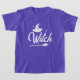 T-shirt sorcière pour enfants. Casquette de sorcière et graphique Broom. Voici mon costume d'Halloween. Texte/graphique blanc. Personnalisez-le !