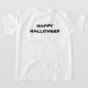 Un épouvantail amusant se trouve sur le devant de cette adorable chemise d'halloween. Le salut "Happy Halloween" est à l'arrière. Oeuvre de Jo Ann Hayden