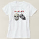 Pour des cuirs épais de théâtre. Titre de Hamlet de Shakespeare en rouge lumineux avec des masques de drame ci-dessous. Un masque recouvre un crâne avec grimacer des dents et un oeil.