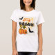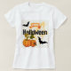 Joyeux design d'halloween avec chauves-souris et citrouilles. Ce design semble vraiment efficace sur ce T-shirt féminin