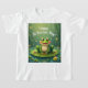 This charming and festive illustration features a cheerful green frog sitting happily on a lily pad, surrounded by clovers and soft glowing lights. With the playful message “Happy St. Patrick’s Day!” floating above, the scene captures a whimsical, feel-good holiday spirit