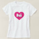 Ce t-shirt est doté d'un coeur rose chaud et vibrant contenant les lettres coques inférieures, blanches et arrondies, en hi, une abréviation ludique pour Hawaii, l'état d'aloha.