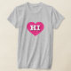 Ce t-shirt est doté d'un coeur rose vif et chaud contenant les lettres coques supérieures, blanches et audacieuses HI, l'abréviation officielle de Hawaii, l'état d'aloha.