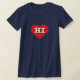 Ce t-shirt est doté d'un coeur rouge vif contenant les lettres chaudes, blanches et coques supérieures HI, l'abréviation officielle de Hawaii, l'état d'aloha.